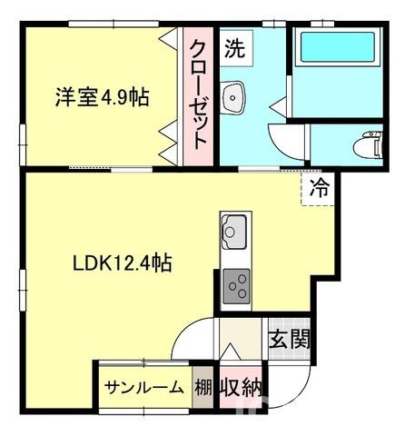 LDK 12.4帖/洋室 4.9帖 - 向き
