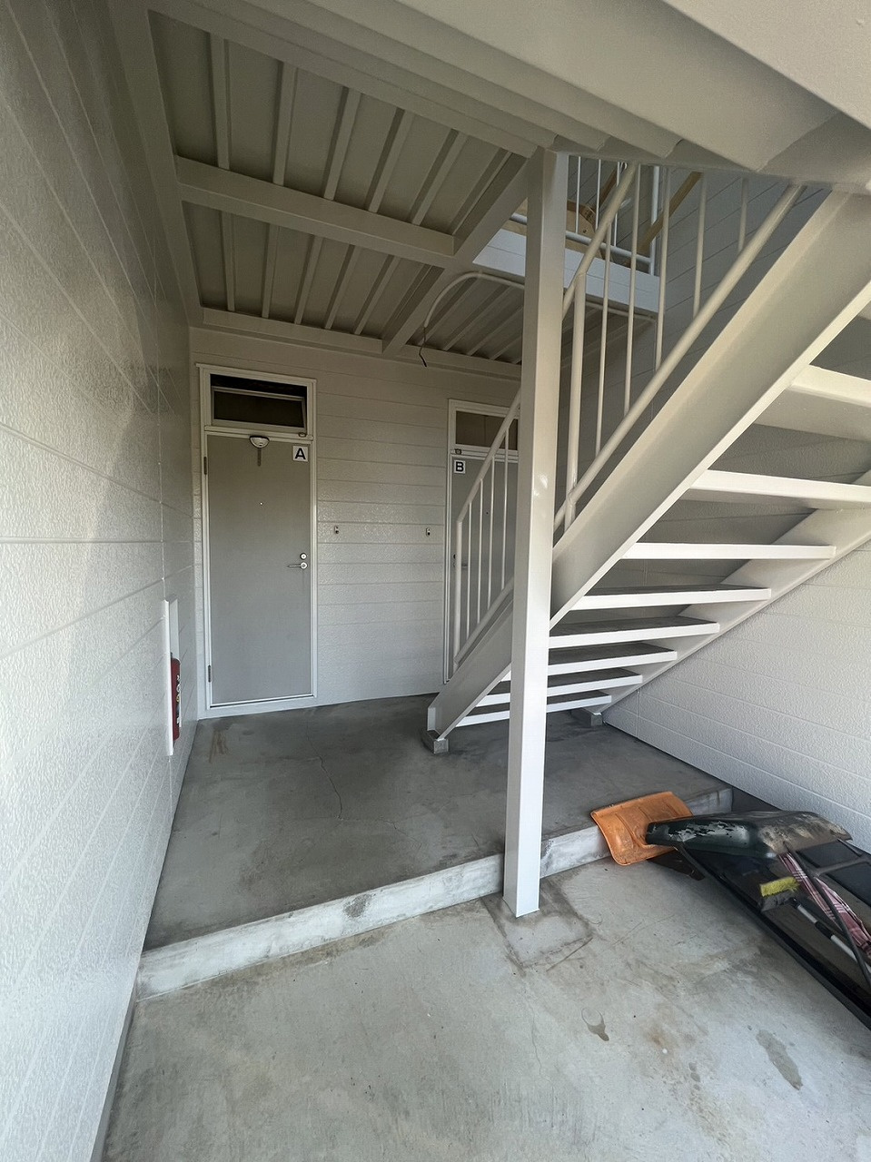 玄関周りや共用部は外観とは対照的に白で仕上げました!階段もキレイです♪